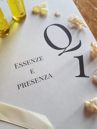 Il Quaderno numero uno, creato in Edizione limitata di 150 cofanetti, si focalizza su Essenze e Presenza perché introduce tre qualità fondamentali dell’esperienza olfattiva: l’apertura, la curiosità e l’ascolto e si compone di: